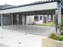 子どもたちが安心して遊べるようにとのご要望で、お庭も広いこともありステンレスパイプの電動式を取り付けました。車が3台、リモコンにて開閉でき広い間口(7.5m)にも対応できます。